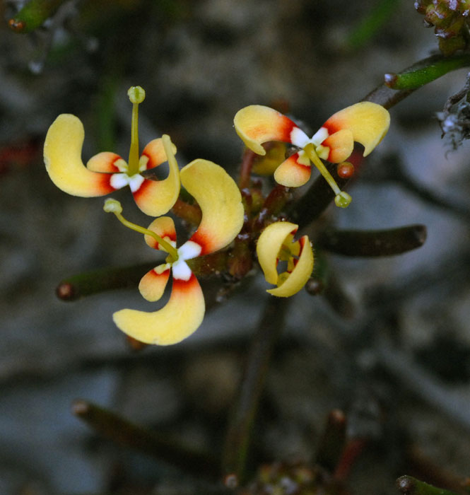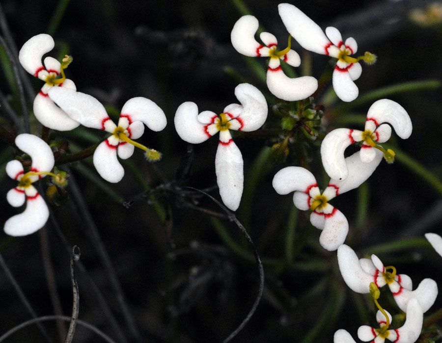 Triggerplants are sensitive to touch and any insect landing on the flower causes the "trigger" to trap the insect. The insect struggles to get away and is covered in pollen which it then transfers to the next trigger plant it lands on. The trigger comprises both male and female parts of the plant fused into a single column. The trigger resets itself after a few hours.