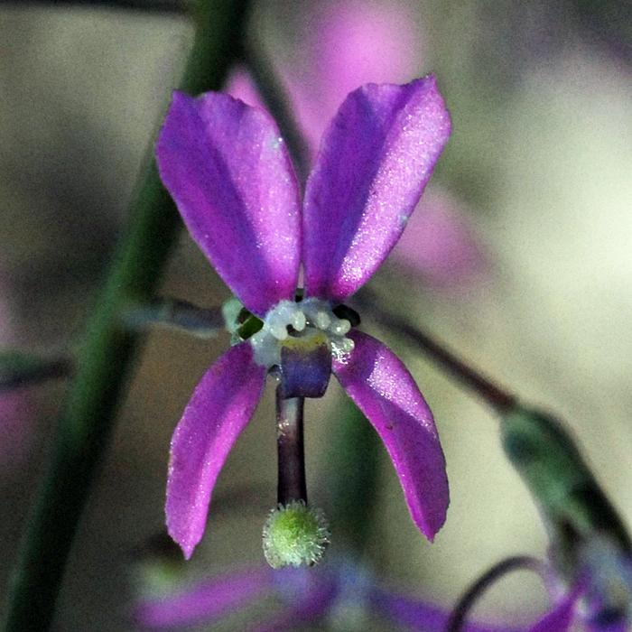 There are over 300 species of Stylidium most of which grow in Australia so this is a large genus. They vary enormously in habit some being procumbent or quite small and other over 1 m tall. Stylidium brunonianum is one of the larger species with long columns of flowers. It is mostly found From Perth down to about Margaret River not straying very far from the coast.