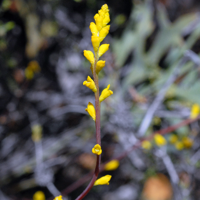 This Synpahea has florets much more spaced on the stem than many and with its distinctive forked, flattened leaves is found mostly along the coastal belt from Perth to the far south west corner and along the south coast to Esperance.