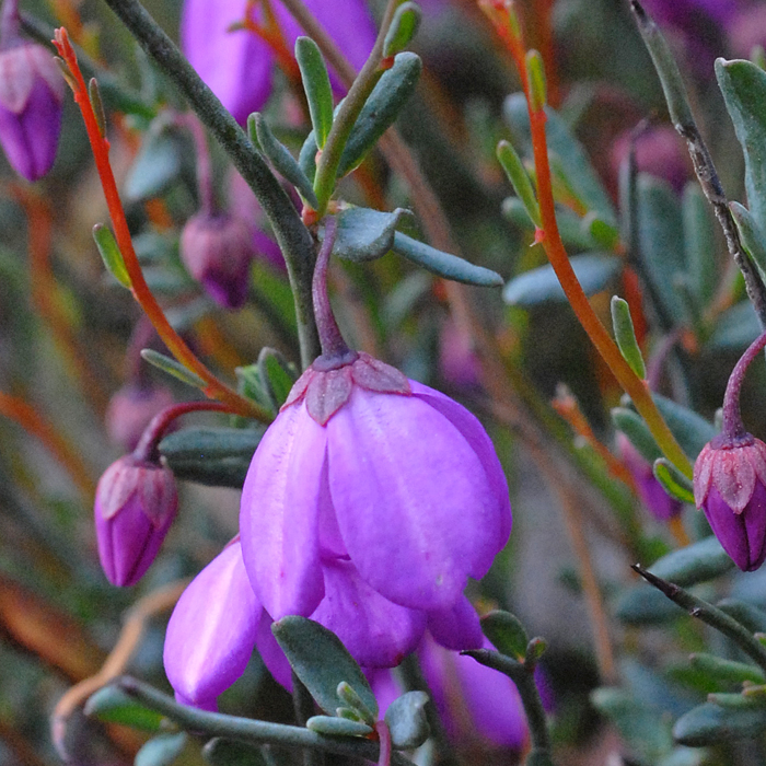 The flowers in this endemic genus tend to hang their heads so to get a photo you must almost lie on your back pointing the camera upwards. The flowers can be purplish like this, pink or white and grow in a relatively small area in the southern wheat belt well inland from both Perth and Esperance and extending to around Kalgoorlie.