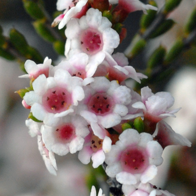 There are some genera in the Myrtaceae family which are very hard to identify which is why this one has remained untouched in my "Unidentified W.A. plants file" for nearly 20 years. But with the recent help of experts online, it is pretty certain that this one is Thryptomene kochii.
