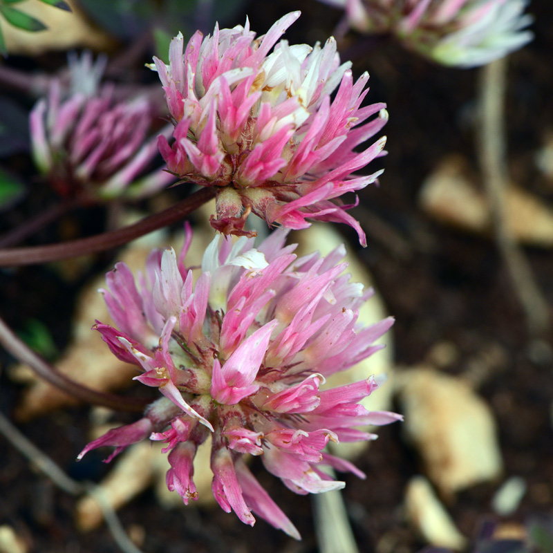 This clover had fruits (not shown - too early) very similar to Strawberry clover (Trifolium fragiferum) but with the stronger pink flowers and dark, marked foliage, there are significant differences. It is a plant of the eastern Mediterranean having stronghold in southern Greece and Crete, only a few in Turkey and many sites in Israel and further north even as far as the foothills of the southern Caucasus. It is said to be a glycophyte which means it prefers to grow in soils with little sodium content. It could grow, as this one did not far from the coast in the hills, but probably not so near that salt spray could reach - it is the dead opposite of a halophyte.
