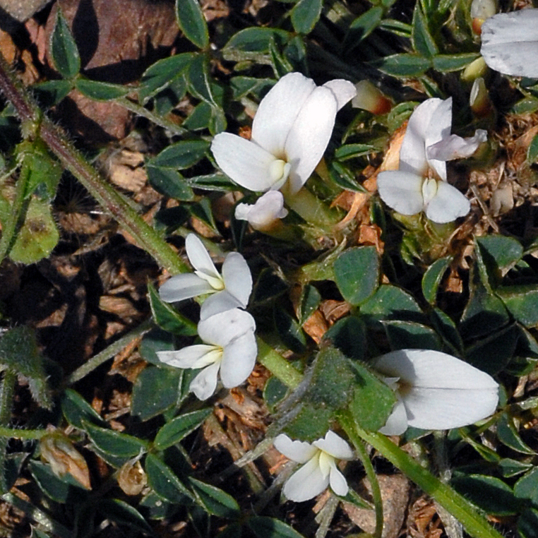 Looking quite like Trifolium subterraneum (Burrowing Clover) this prostrate plant usually has single flowers but occasionally in twos or threes, which can be white, cream, pink, and even purple or bicoloured. It has pointed, almost mucronate leaves and few hairs. It will thrive in rocky mountain habitats.