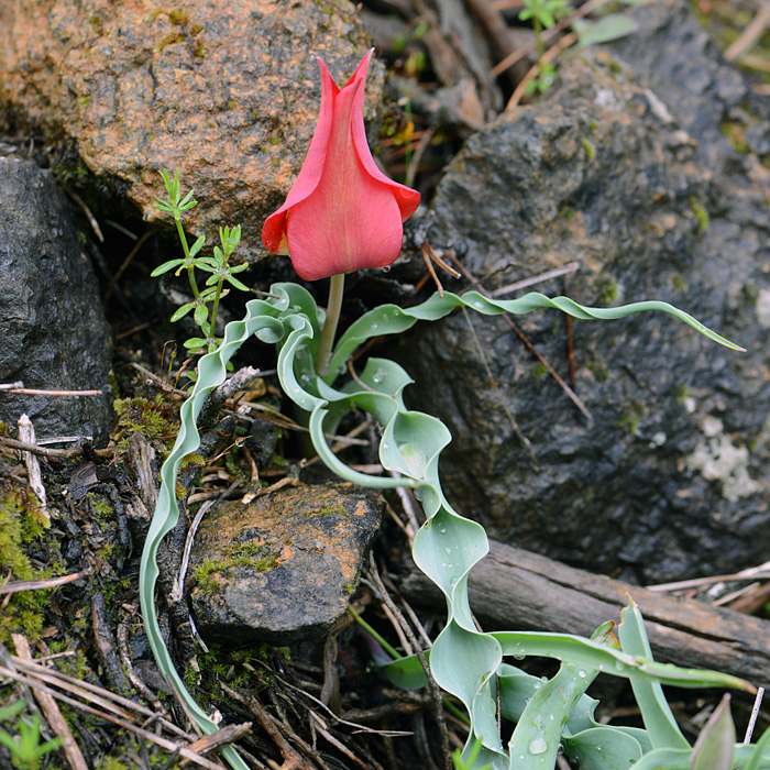 This is a plant which prefers dry, rocky habitats and full sun. The spectacular wavy-edged, glaucous leaves make this a very attractive species for gardeners to grow in their rockeries. Sometimes the flowers have yellow edges and var lycica has hairy bulbs.