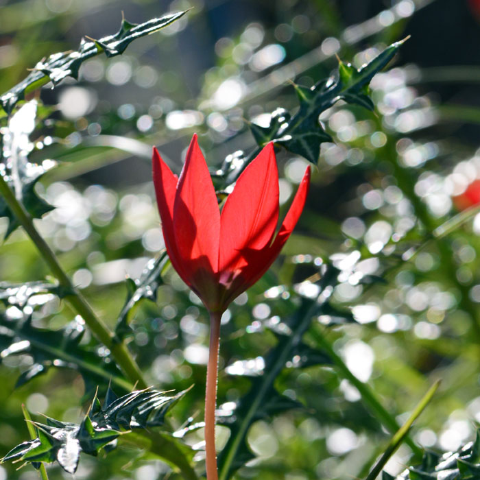 Tulipa orphanidea has a sub species flava which is yellow and this one is probably ssp orphanidea. It grows in Crete and Greece mainland as well as Turkey and in the British Isles is a popular garden plant. Tulipa orphanidea was named after the Greek botanist Theodoros Georgios Orphanides a professor of Botany in Athens in the late 19th century.