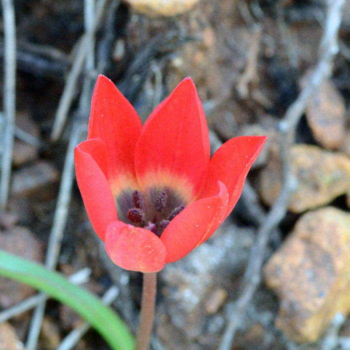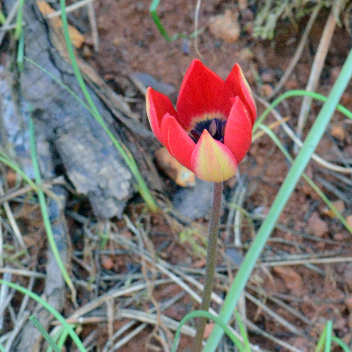 We were lucky enough to find a forested hillside covered in Tulipa orphanidea but access was impossible as the area had been fenced of with tightly strung, very sharp, barbed wire. So the photos here are strays which had made it to the roadside bank.