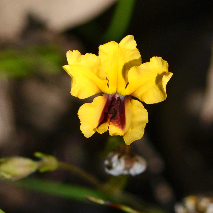 Named by James Edward Smith after his friend, botanist and algologist Thomas Velley, this genus Velleia has twenty one species twenty of which are endemic to Australia. There are two very similar Velleia species which grow around the Manjimup area where this one was found, the commonest of which if Velleia trinervis. The very similar Velleia macrophylla (Large-leaved Velleia) which is much less common and is said to be glabrous also grows in this area But this one was distinctly hairy so that characteristic rather than flower colour or leaf shape has led to this identification.