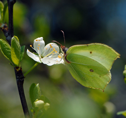 This butterfly feeds on Rhamnus cathartica (Buckthorn) and Frangula alnus (Alder Buckthorn) neither of which grow in any quantity near home in Cheshire so I tend to see this butterfly on my travels down south or in the limestone dales of Derbyshire.