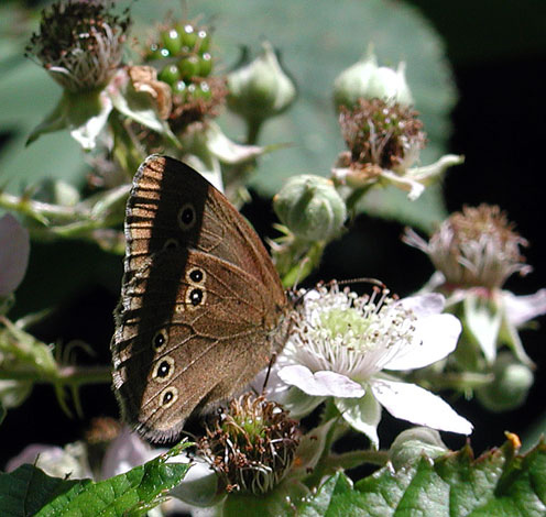 The left hand photo was taken in a small glade where we'd seen the Red Admiral, a Peacock, a Brimstone, a Tortoiseshell and a White Admiral and as if that wasn't enough, this Ringlet came to pose for a photo.