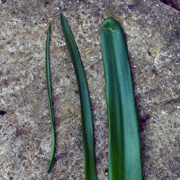 | Floral arrangement | Always one-sided but occasional florets point in different directions. | Mostly all round the scape but hybrids with mostly native genes can be one-sided. Often has a dense flower head. | All round the scape but few florets round the flower-head. |